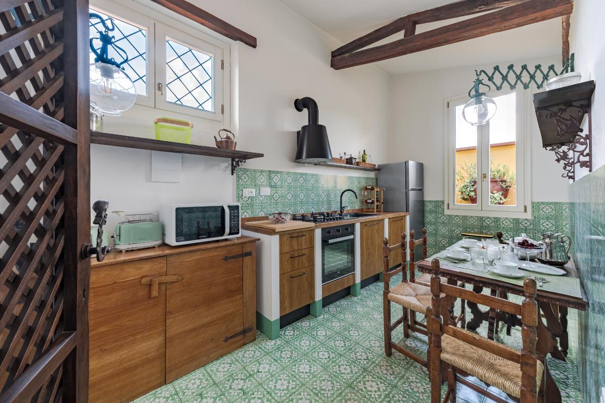 La cucina è attrezzata con tutto il necessario per preparare piacevolmente i pasti, dalla colazione alla cena. E’ dotata di tutti gli elettrodomestici di uso quotidiano (microonde, bollitore, tosta pane, macchina del caffè), ospita un tavolo da pranzo e si affaccia su un piccolo terrazzo piantato con erbe aromatiche.